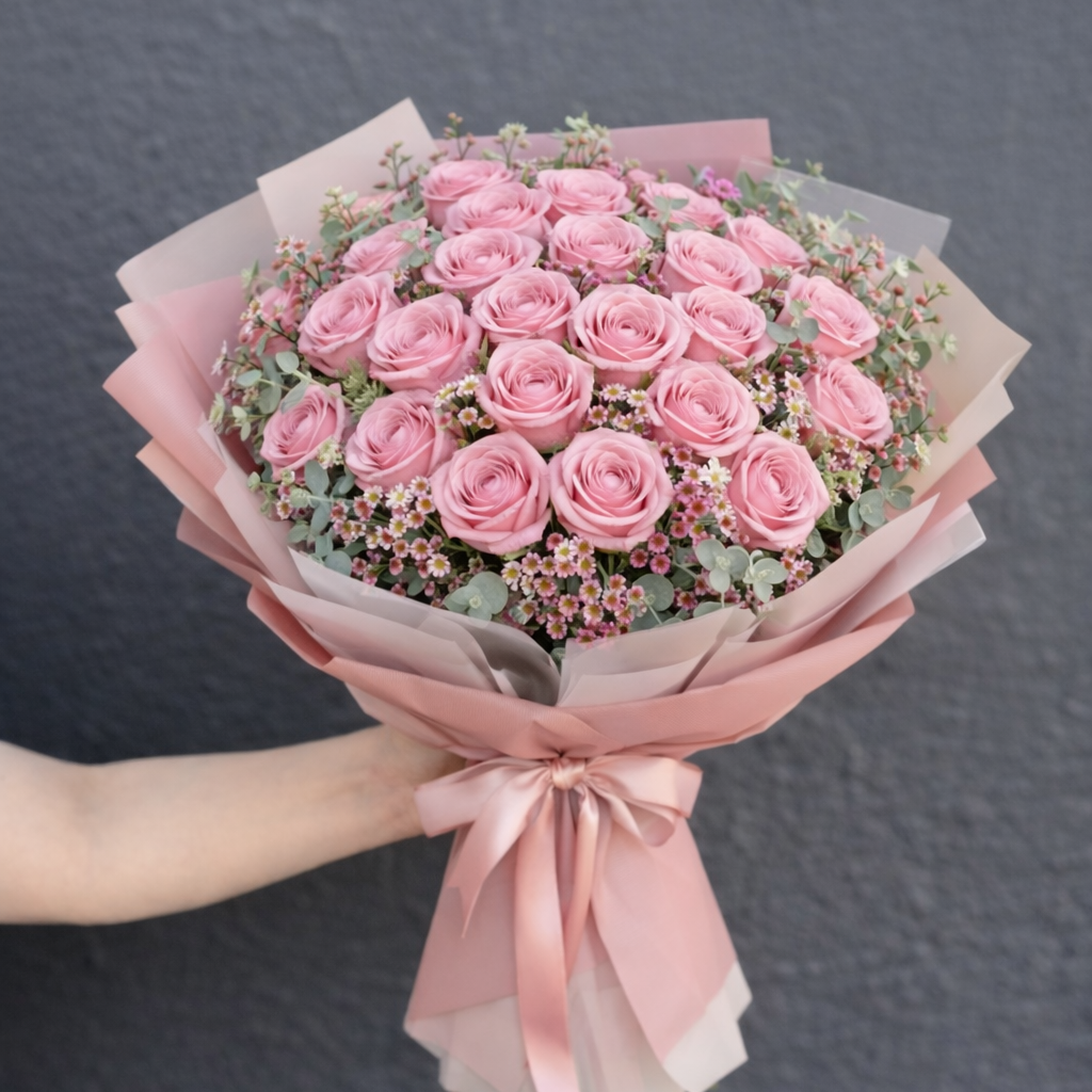 Pink Roses – Classic Wrapped Bouquet